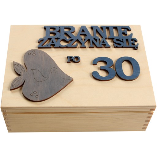 - Materiał pudełka: drewno - przez co pudełko jest solidne, posłuży długie lata,