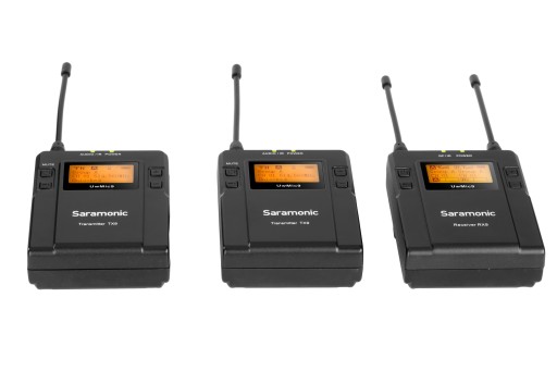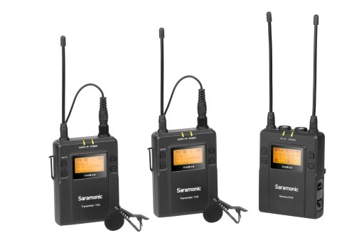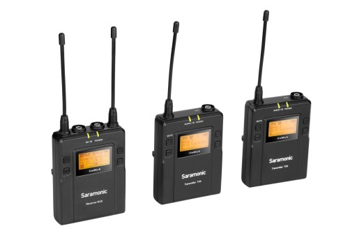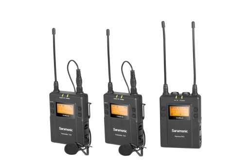 Zestaw Saramonic RX9 + TX9 + TX9 to odbiornik oraz dwa nadajniki z mikrofonami krawatowymi wchodzące w skład systemu bezprzewodowej transmisji dźwięku UwMic9.