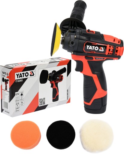 - w zestawie: akumulator 2 Ah YT-82909 i ładowarka 1 h oraz 3 dodatkowe krążki ścierne o różnej twardości (do wosku i pasty)