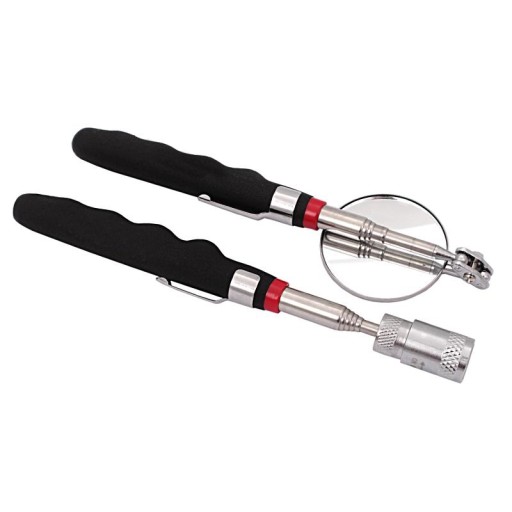 Zestaw inspekcyjny - teleskopowy chwytak magnetyczny z lampką LED oraz teleskopowe lusterko. Rękojeści pokryte warstwą silikonu dla lepszego chwytu.