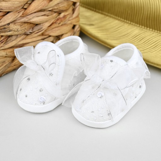 КРЕЩЕННАЯ ОБУВЬ КРУЖЕВНАЯ крестильная - БЕЛАЯ, размер 10 см.