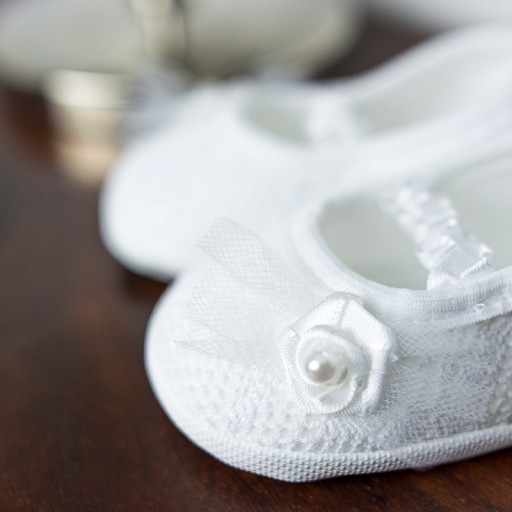 Białe, koronkowe buciki do chrztu dla dziewczynki