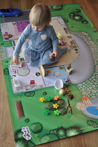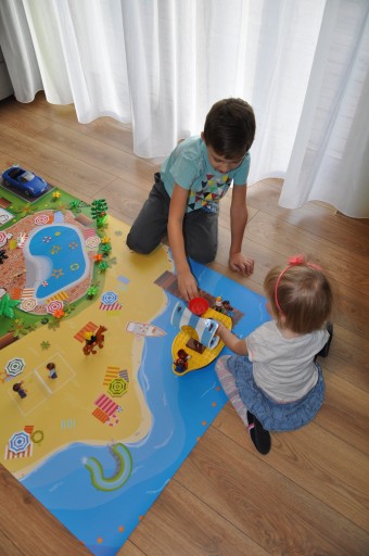 Dziecko może bawić się na macie zarówno samodzielnie, jak i z nami, z rodzeństwem czy kolegami i koleżankami. Może odgrywać scenki z życia lub tworzyć własne scenariusze. Ograniczeniem jest tylko dziecięca wyobraźnia:)