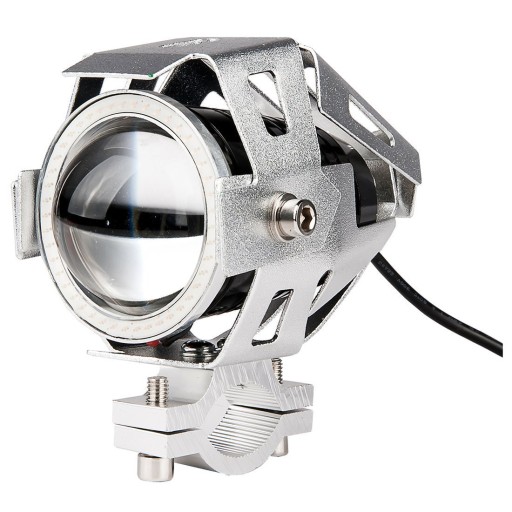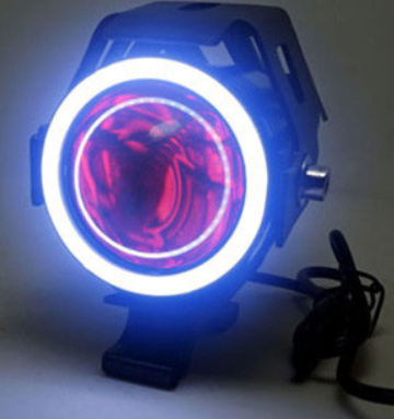 Motocyklowe Reflektory LED z białym lub niebieskim ringiem. Posiadające światło mijania, drogowe oraz światło stroboskopowe+ dodatkowy ring w kolorze niebieskim, obudowa wodoszczelna światło mocy 30W