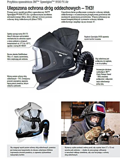 Nawet najlepsze przyłbice spawalnicze zapewniające ochronę dróg oddechowych nie będą noszone cały dzień, jeżeli nie będą one zapewniać odpowiedniego komfortu. Przyłbice spawalnicze Speedglas™ serii 9100 firmy 3M™ zapewniające ochronę dróg oddechowych zostały zaprojektowane z myślą o zapewnieniu komfortu i ochrony i w domyśle mają być one łączone ze zdobywającymi liczne nagrody.