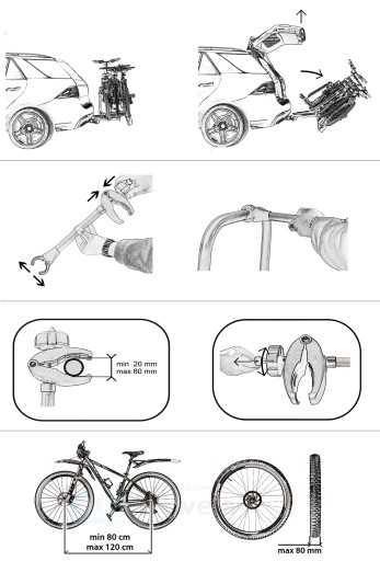Umożliwia przewożenie zarówno dużych jak i małych rowerów. Każde mocowanie pod koła można regulować z osobna.