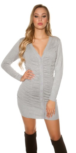 SW42 J.СЕРЫЙ ШЕРСТЯНОЙ ДЖЕМПЕР НА ПУГОВИЦАХ, ЗАВЯЗКЕ, ДЛИННЫЙ