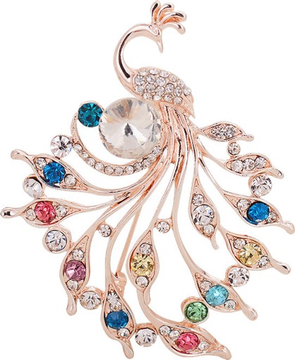 ✔️ Piękna pozłacana broszka paw, łabędź, ptak, wykonany w całości ze stopu metalu jubilerskiego, wysadzany kolorowymi cyrkoniami. Na środku znajduje się przezroczysty kryształ, szlifowany i polerowany aby nadać mu szlachetny wygląd.