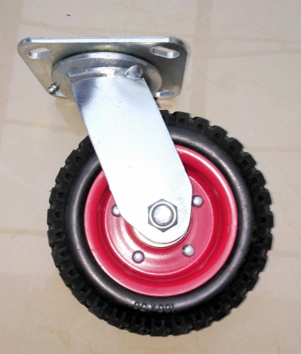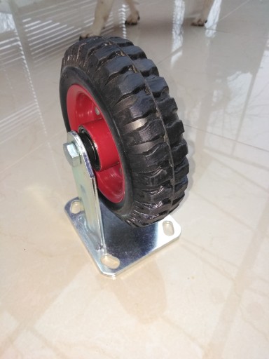 Czarna standardowa pełna gumowa opona, bieżnikowana, stalowa piasta z tłoczonej blachy, malowana proszkowo, podwójne łożysko kulkowe