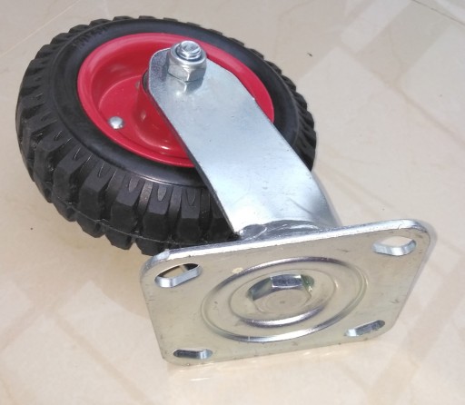 Czarna standardowa pełna gumowa opona, bieżnikowana, stalowa piasta z tłoczonej blachy, malowana proszkowo, podwójne łożysko kulkowe