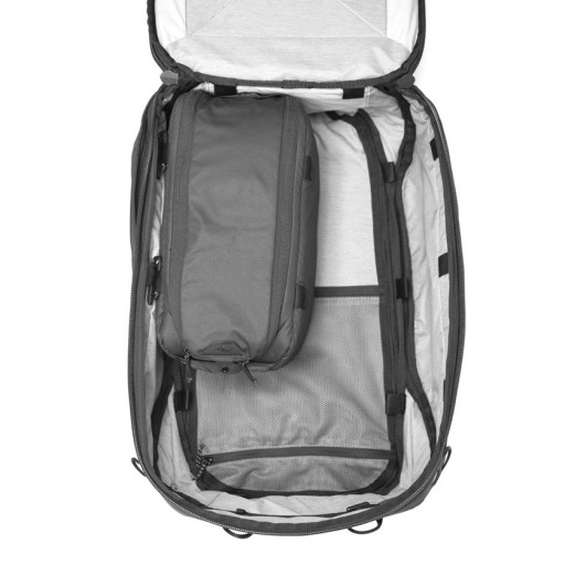Oprócz konfiguracji przegród wewnątrz wkładu niewielki rozmiar pozwala też na wygodną konfigurację wewnątrz plecaka. Możesz więc ułożyć go jak chcesz, w zależności od aktualnych potrzeb i posiadanych wypełnień.