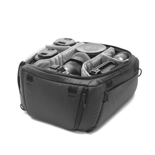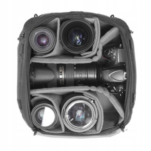 Wkład zaprojektowany z myślą o plecaku Peak Design Backpack 45L. Pozwala na idealną organizację miejsca w plecaku. Niniejszy moduł służy do przechowywania aparatu, obiektywów, kamery lub drona, słowem wszystkich urządzeń foto-wideo, które wykorzystujesz w swojej pracy. Zawartość jest rozdzielana przy pomocy miękkich przegródek (tzw. insertów) skutecznie absorbujących wstrząsy, gwarantując tym samym bezpieczeństwo transportowanego sprzętu.