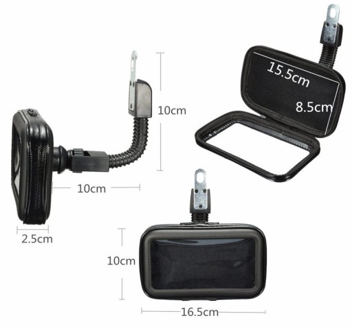 Praktyczny i niezwykle solidnie wykonany uchwyt na telefonu z etui wodoodpornym.