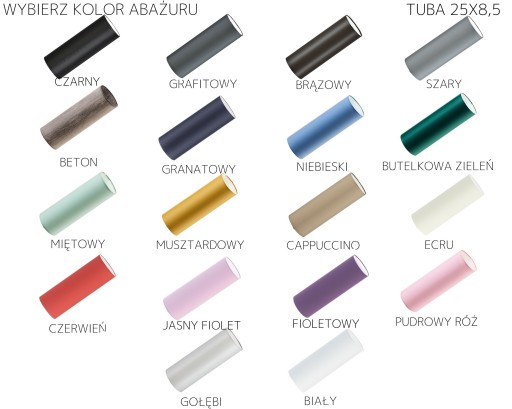 Wybierz kolor stelaża i abażuru, te informacje podaj w wiadomości do sprzedającego.