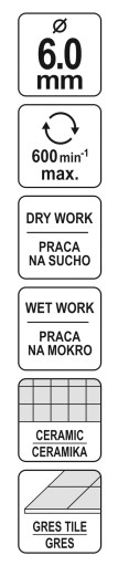 WIERTŁO DO GRESU 6MM DO WIERCENIA MNA MOKRO I NA SUCHO