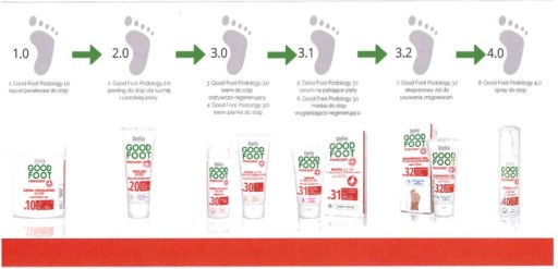 Używaj kosmetyków Good Foot Podology w kolejności wg numerów na opakowaniu, wtedy zagwarantujesz sobie najwyższą skuteczność.