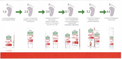 Używaj kosmetyków Good Foot Podology w kolejności wg numerów na opakowaniu, wtedy zagwarantujesz sobie najwyższą skuteczność.