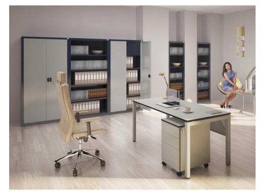 Metalowe szafy aktowo - kartotekowe typ Skb 1. W górnej części przeznaczone na akta w segregatorach. Górna cześć szafy metalowej SKB 1 przeznaczona na wysokość dwóch segregatorów. Część dolna metalowej szafy aktowo-kartotekowej składa się z czterech głębokich metalowych szuflad na format A4. Górna i dolna część szafy biurowej zamykana na niezależnie działające zamki kluczowe.Do każdego zamka dołączone są po dwa klucze.