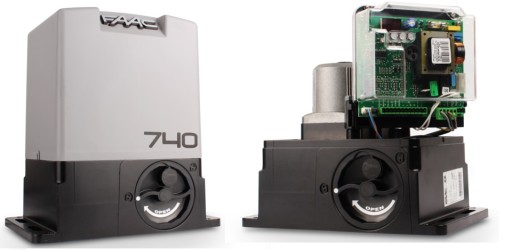 Modele 740 przeznaczony jest do automatyzacji bram wjazdowych o długości max. 15m i ciężarze do 500kg. Zastosowane w nich silniki 230V zapewniają większą siłę pracy niż w modelach 12/24V, a ich konstrukcja oparta wyłącznie na przekładniach metalowych i precyzyjnym łożyskowaniu wału głównego gwarantuje niezawodną obsługę bramy przesuwnej o dowolnej konstrukcji przez długie lata.