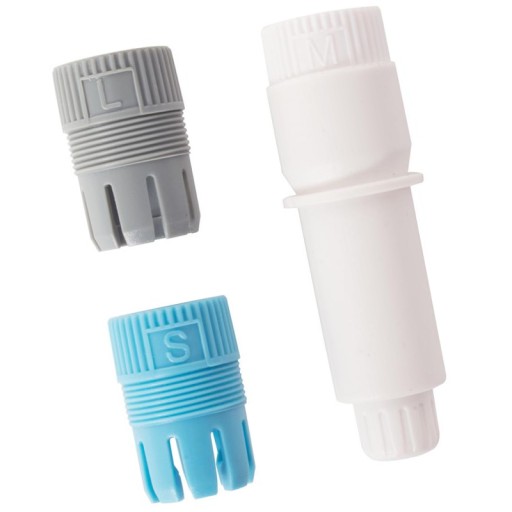 - 3 gwintowane adaptery (tuleje zaciskowe) dla różnych rozmiarów pisaków: niebieski adapter – mały; biały adapter – średni, szary adapter – duży.