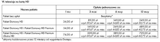 Opłaty za pakiet Domowym HD Premium i Ekstra HD: