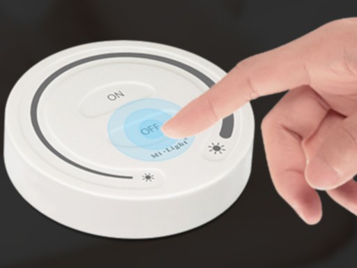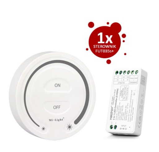 Za pomocą pilota włączysz i wyłączysz sterownik (oświetlenie), możesz ściemniać i rozjaśniać za pomocą dotykowego koła wyboru natężenia światła. Pilot posiada również opcję oświetlenia nocnego.