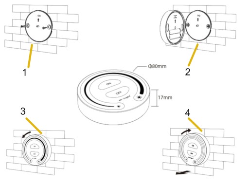 - Załóż pilota na tylną część przykręconą do ściany i obróć w lewo.