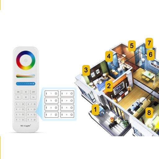 Opis funkcji pilota 8-strefowego MiLight FUT089 :