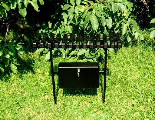 Przedmiotem sprzedaży jest ławka na cmentarz, przygrobowa, przeznaczona do wkopania i zabetonowania, ze składanym obrotowo siedziskiem i małą, metalową skrzynką zamykaną na klucz (2 kluczyki w zestawie), przydatną do przechowywania narzędzi, zniczy i różnych drobiazgów, które czasem dobrze mieć pod ręką.