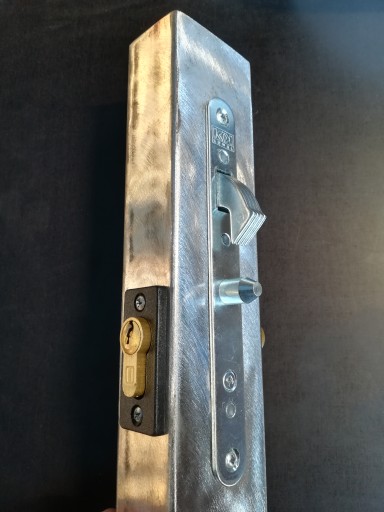 Kaseta 60x40 z zamkiem hakowym, wkładką + zamknięcie z profila 30x30. Zamek w szerszej stronie profila (60mm).