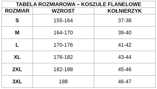 UWAGA! Rozmiarówka koszul jest zawyżona, zalecamy wybór mniejszego rozmiaru. Tabela rozmiarów zamieszczona jest poniżej!