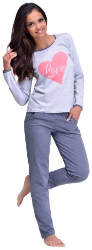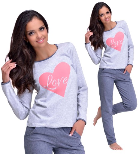 Sportowa piżama damska z dużym sercem na bluzce. Spodnie z praktycznymi kieszeniami.