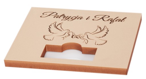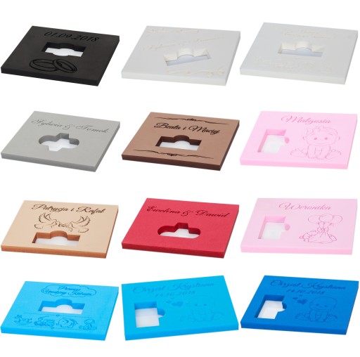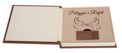 Pudełko wykonane z płótna introligatorskiego dostępne w ośmiu kolorach. Istnieje możliwość wygrawerowania w gąbce i pendrivie dowolnego napisu, grafiki, logo, dedykacji itp.