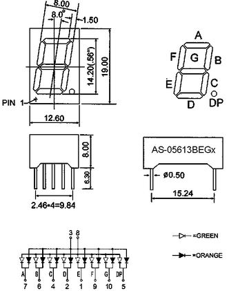 ART Новый светодиод 1 ЦИФРА 0,56"=14 мм КРАСНЫЙ/ЗЕЛЕНЫЙ W.A