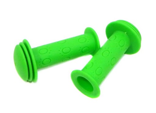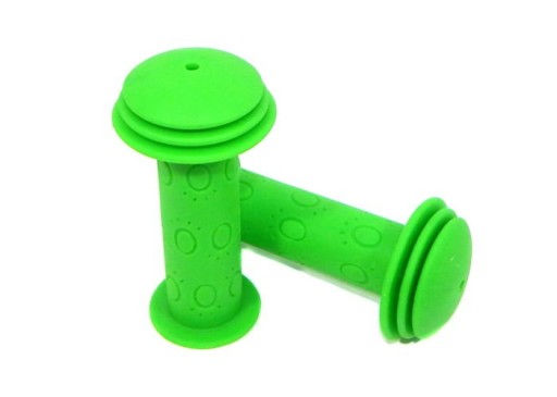 Gumowe uchwyty kierownicy w kolorze zielonym to idealny przedmiot dla każdego małego rowerzysty. Dzięki nim poprawimy naszym pociechom wygodę jazdy oraz zapewnimy ciekawszy wygląd pojazdu. Wykonane są z miękkiego, gumowego materiału, który zapewni bezpieczeństwo nadgarstków i znacząco poprawi komfort. Gumowe uchwyty sprawiają, że dłuższa jazda nie jest męcząca. Łatwy montaż.