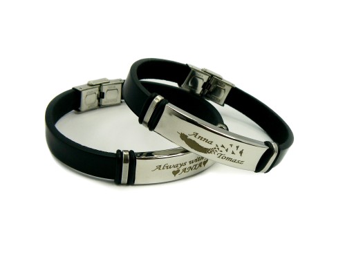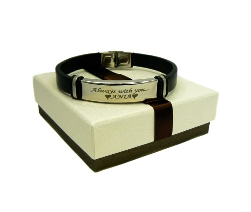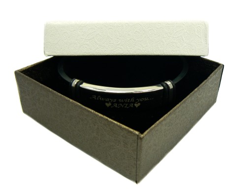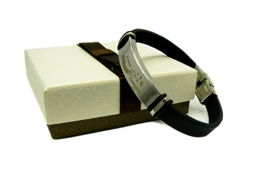 Bransoletka z efektownym grawerem ze stali szlachetnej i skóry.