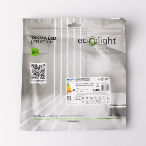 - 1m taśmy pobiera tylko 4,8W a odpowiada 20W tradycyjnej żarówce