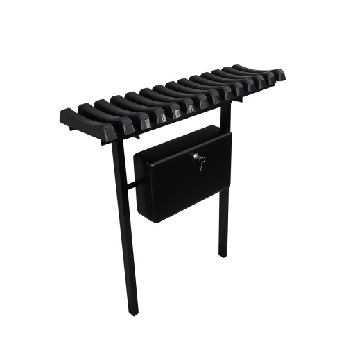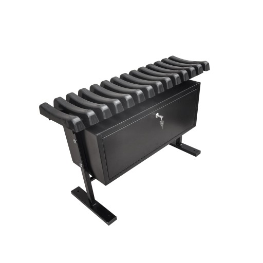 Skrzynka znajdująca się pod siedziskiem również jest metalowa oraz malowana metodą proszkową.