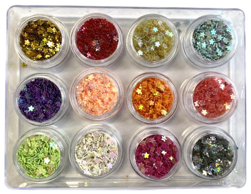 ГОЛОГРАММЫ ЦВЕТЫ ДЛЯ УКРАШЕНИЯ НОГТЕЙ 12 ЕМКОСТЕЙ.