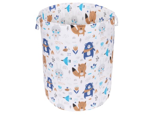 Dwustronny kosz na zabawki, świetnie sprawdzi się w pokoju dziecięcym, a także w innych pomieszczeniach w domu. Wykonany z bawełny 100%, w środku wypełniony sztywną pianką poliuretanową. Posiada uszy, aby ułatwić jego przenoszenie.
