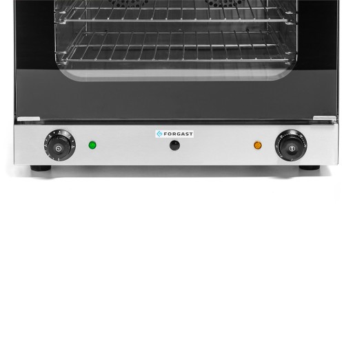 Piec konwekcyjny z naparowaniem komory marki Forgast wykonany ze stali nierdzewnej. Nawilżanie ręczne - przycisk na panelu dolnym. Komora piecyka ze stali nierdzewnej. 2 wentylatory. Piecyk idealny do zapiekanek, kanapek, odpiekania pieczywa itp. Sterowanie manualne. Piec mieści jednorazowo 4 blachy o wymiarach 43x31 cm.