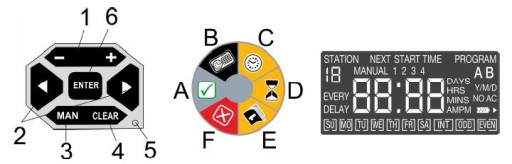 Sterownik jest wyposażony w pięć dużych przycisków (w tym dwa podwójne) dla ustawienia programu nawadniania oraz przycisk resetu. Wspólnie ze wskaźnikiem programowania widocznym na wyświetlaczu, przyciski służą do ustawienia: bieżącego czasu, czasu nawadniania, dni nawadniania, pory nawadniania i innych funkcji.
