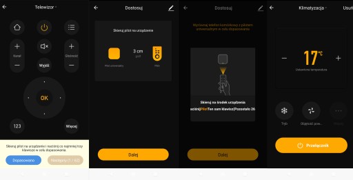 3. Zapisanie pilota na urządzeniu TUYA IR Blaster, poprzez kopiowanie zgodnie z instrukcjami na ekranie telefonu.