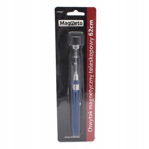 Teleskopowy chwytak z magnetyczną końcówką 60cm Służy do unoszenia metalowych przedmiotów, takich jak śruby, nakrętki, podkładki, itp. z trudno dostępnych miejsc: z rur odpływowych, zza szafek, z komory silnika. Niezbędny w każdym warsztacie mechaniczny