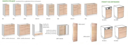- SZAFKI DOLNE - wysokość 82 cm, głębokość 46 cm (z frontem)