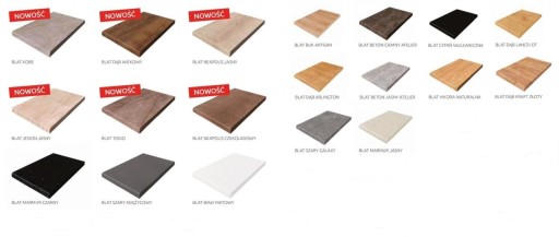 W cenę zestawu wliczony jest blat o szerokości 2,4 metra w kolorze do wyboru poniżej z tabeli :