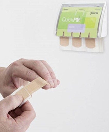 - Dozownik (automat) do plastrów PLUM QuickFix Uno z plastrami wyciąganymi od dołu.