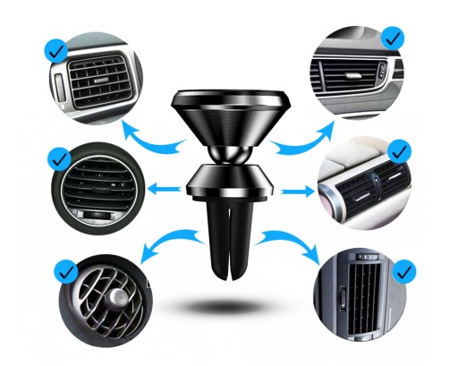Nowy uchwyt magnetyczny montowany na kratkę wentylacji. Uchwyt jest uniwersalny, co oznacza, że pasuje na większość telefonów, nawigacji, tabletów. Doskonale sprawdza się na telefonach mających płaski tył. Dzięki technologii 360 + 3D uchwyt umożliwia ustawienie telefonu pod najlepszym kątem. Zaletą uchwytu są jego niewielkie gabaryty - jest niezwykle kompaktowy.