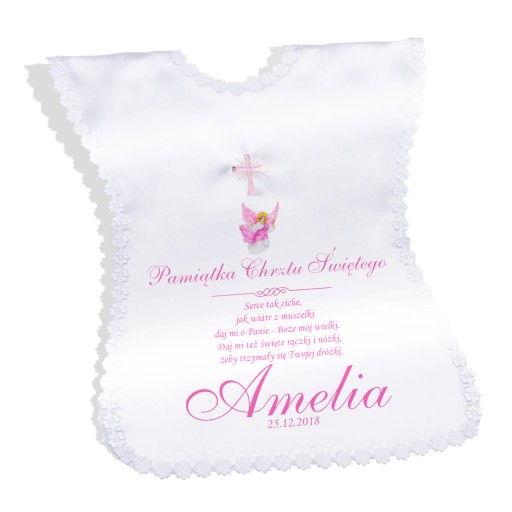 Proponujemy Państwu śliczną szatkę i świecę do Chrztu z indywidualną dedykacją, zdjęciem dziecka. Szatka w stylu papieskim wykonana jest z atłasowej tkaniny z haftem Krzyża w kolorze różowym! (pozostałe kolory na innych naszych aukcjach). Świeca jest ręcznie zdobiona przez co jest zyskuje swój niepowtarzalny charakter. Piękna i niezapomniana pamiątka Chrztu Świętego.
