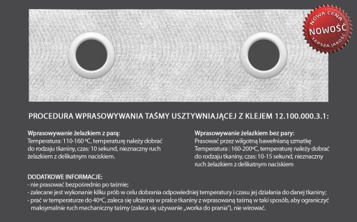 Służy do usztywniania firan, tkanin zasłonowych i dekoracyjnych - idealna do przelotek
